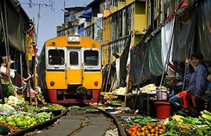 Arrive the Train Market. Then walk along the market and wait to see when the train is coming through the market.
